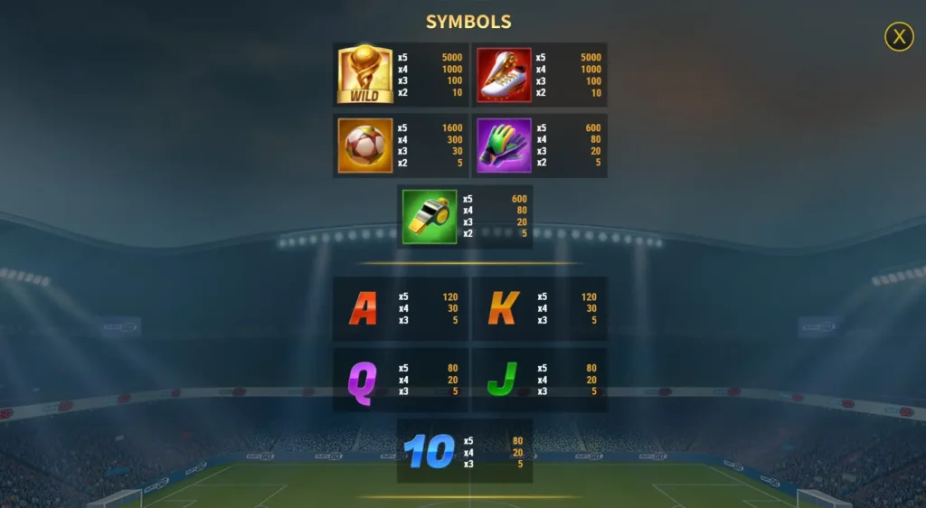 • High-paying symbols: Football boots, football (or soccer ball, if that’s your lingo), goalie gloves, and a referee’s whistle.